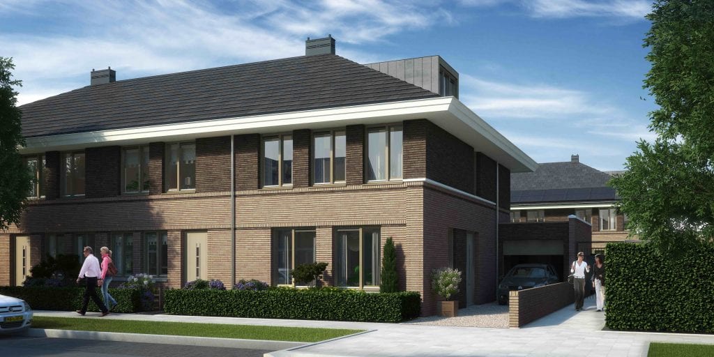 Deze statige woningen zijn geïnspireerd op de klassieke Frank Lloyd Wright (FLW) architectuur. Deze kernmerkt zich door kleur- en materiaalgebruik van FLW en horizontaliteit. De royale hoekwoningen vormen samen met twee grote tussenwoningen een chique vier-onder-een-kap-woonblok; een beproefd concept uit de jaren twintig en dertig.